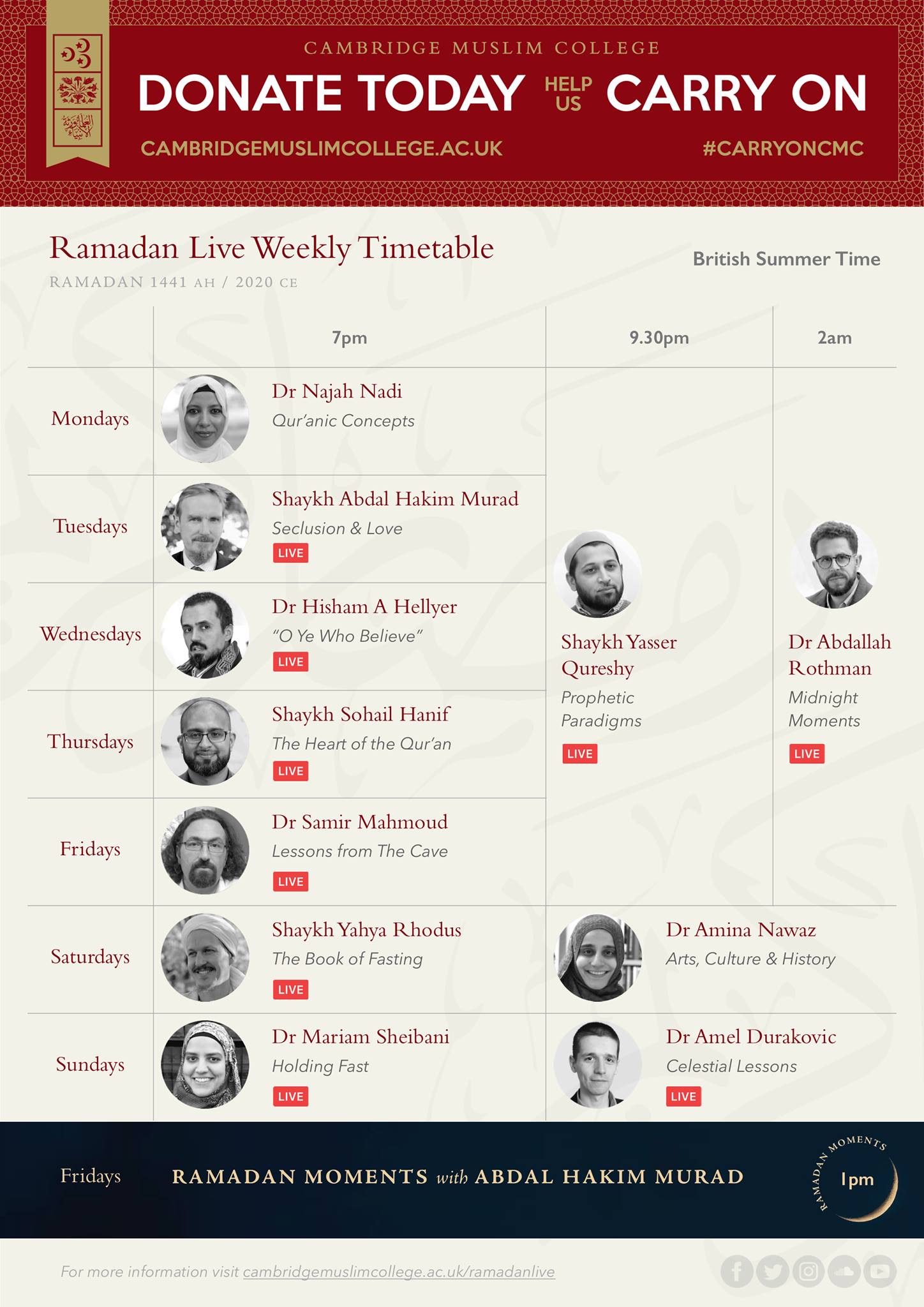 Cambridge Muslim College has an incredible set of classes streaming live this month from Australia, the US, Cairo, Turkey, and throughout Europe. Check out the full schedule below, times are in British Summer Time. Check out all their programs here.