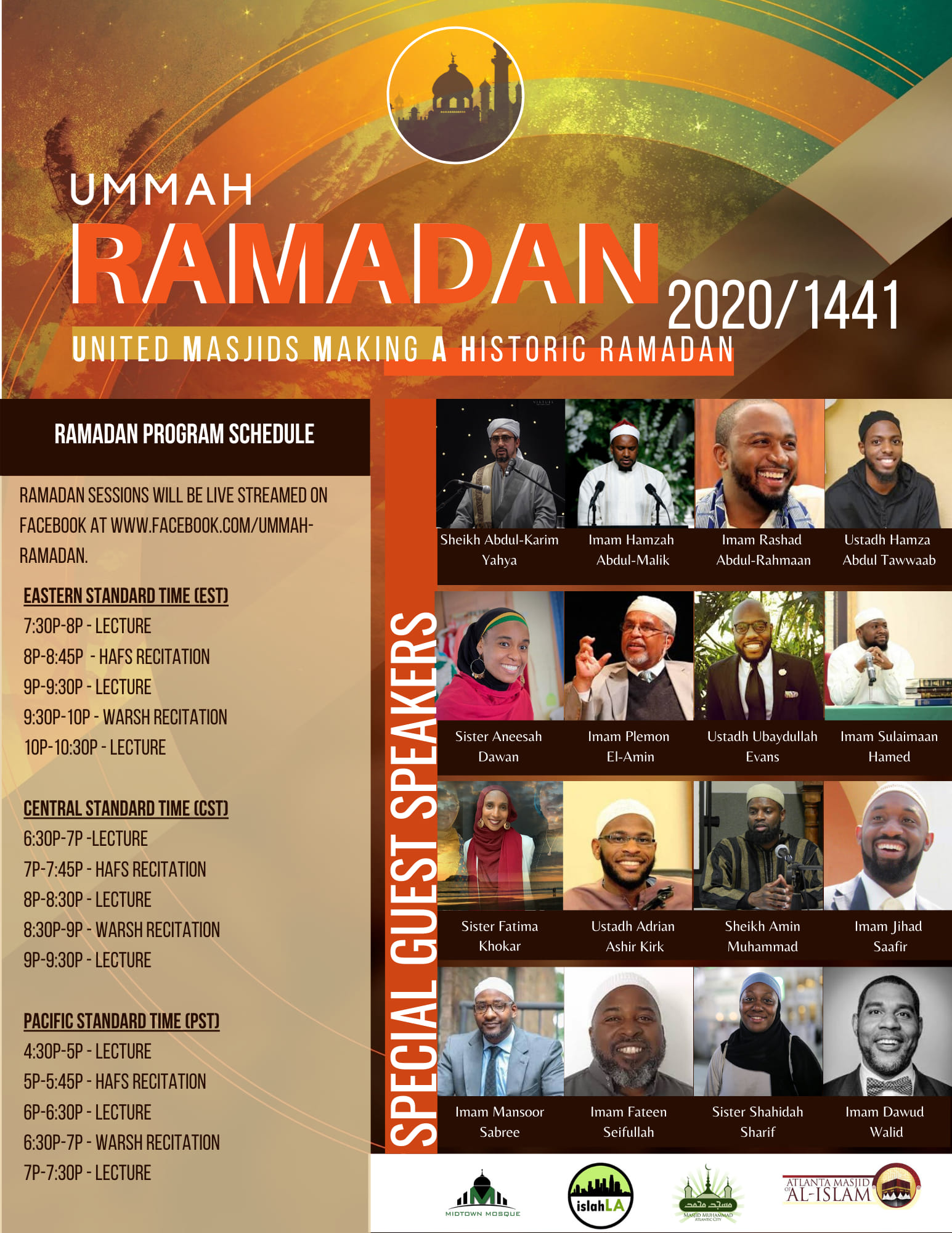 What a beautiful month this is wherever we spend it as we turn away from our daily desires and to the worship of fasting, prayer, and charity. We have been placed in retreat in our homes, the question for each of us, as it is every Ramadan, is how do we connect with Allah? How do we know God experientially in my worship and in my life? While most of us can’t leave our homes we are blessed to be able to access the world and to access scholars we would otherwise not have access to this month. Mosques and Muslim institutions around the world have worked tirelessly to put up a unique set of programs in the month and we wanted to celebrate them below.