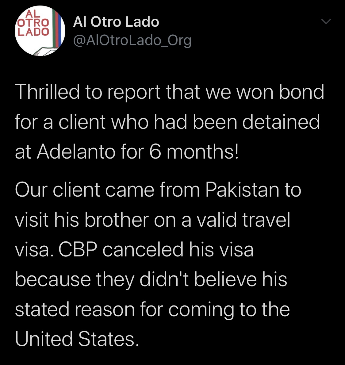 Working with groups like Al Otro Lado in Tijuana / San Diego who take hundreds of asylum cases per year, we have heard stories of the arbitrary detention of Muslims at our various ports of entry. Like this brother we just heard about last week from Pakistan who was detained for 6 months when he tried to enter the US to see his family.